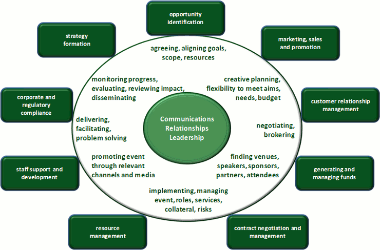 - οι γιορτές , οι βραβεύσεις , τα meeting , οι συνεντεύξεις τύπου , τα επαγγελματικά γεύματα , τα επαγγελματικά ταξίδια , τα πράσινα event , οι εκδηλώσεις αειφορίας , η χορηγία και τόσες ακόμα δραστηριότητες διοργανώνονται απο τα τμήματα εκδηλώσεων .